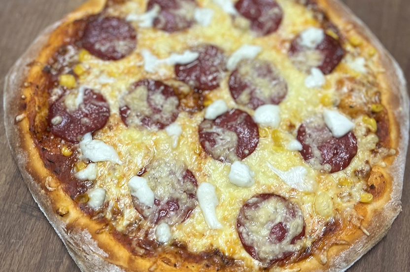 BL55 finomliszt, tej, vadkovász, margarin, paradicsomszósz, paradicsom, sajt, szalámi, kukorica, cukor, élesztő, só