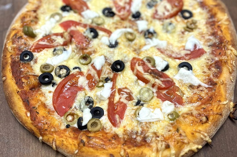 BL55 finomliszt, tej, vadkovász, margarin, paradicsomszósz, paradicsom, sajt, mozzarella, olivabogyó, cukor, élesztő, só