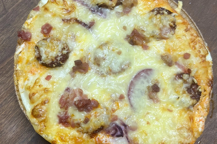 BL55 finomliszt, tej, vadkovász, margarin, paradicsomszósz, bacon, kukorica, sajt, cukor, élesztő, só